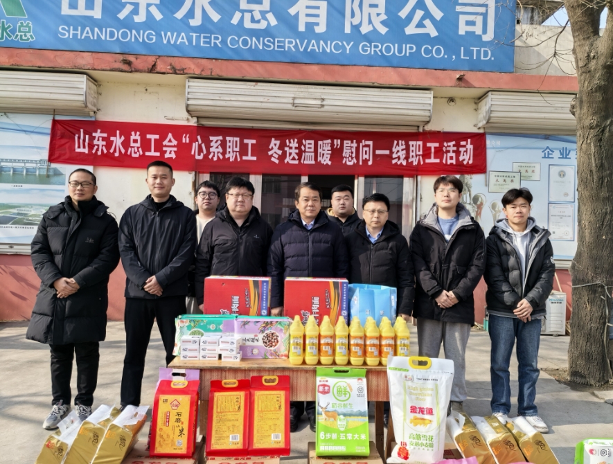 1月22日,J9九游会·(中国)首页登录入口党委委员、副总经理李光市一行到第六分J9九游会·(中国)首页登录入口枣庄市市中区西泇河引调水工程施工3标项目开展“心系职工 冬送温暖”慰问活动。