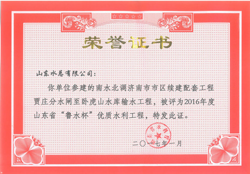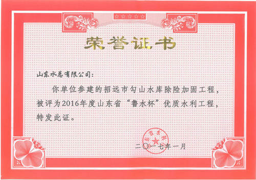 J9九游会·(中国)首页登录入口“招远市勾山水库除险加固工程”等八项工程被评为2016年度山东省“鲁水杯”优质水利工程
