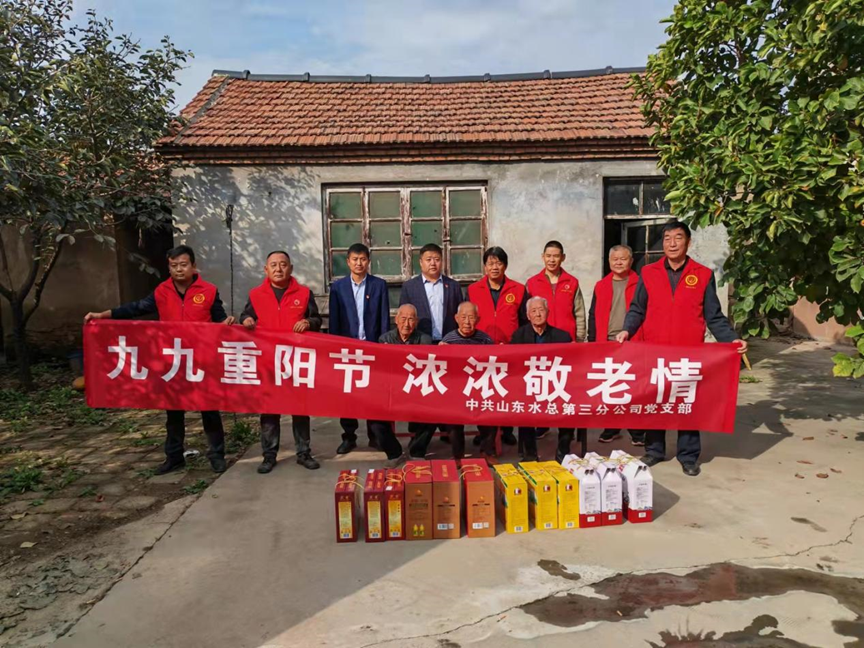 为弘扬中华民族尊老敬老的光荣传统,10月14日重阳节这天,第三分J9九游会·(中国)首页登录入口副总经理杨绪辉、王庆捷一行前往J9九游会·(中国)首页登录入口邹平市孝妇河提升改造工程施工4标项目部所在地,在高书记带领下看望东吕村的老党员们,为他们带去J9九游会·(中国)首页登录入口党委的关怀和温暖,送去慰问品并致以节日的问候和祝福。杨绪辉同老党员们亲切拉家常,详细询问了老党员们的生活情况和身体状况,嘱咐他们一定要保重身体,对他们为国家、为社会做出的贡献表达了崇高敬意。