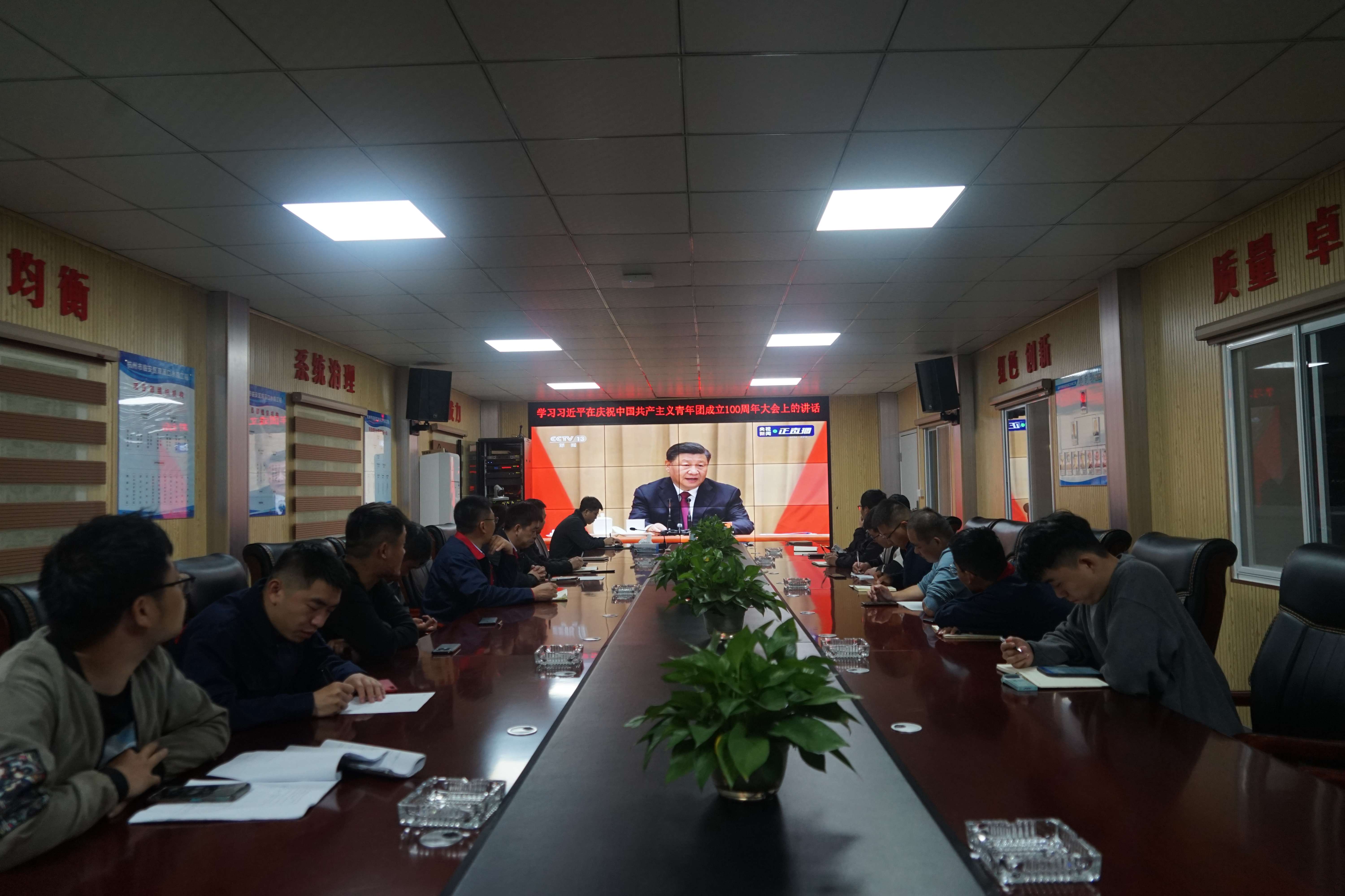 5月10日,杭州鲁润J9九游会·(中国)首页登录入口与第六分J9九游会·(中国)首页登录入口共同组织双溪口水库工程团员青年,观看中国共产主义青年团成立100周年庆祝大会实况。庆祝大会上,习近平总书记发表了重要讲话。
