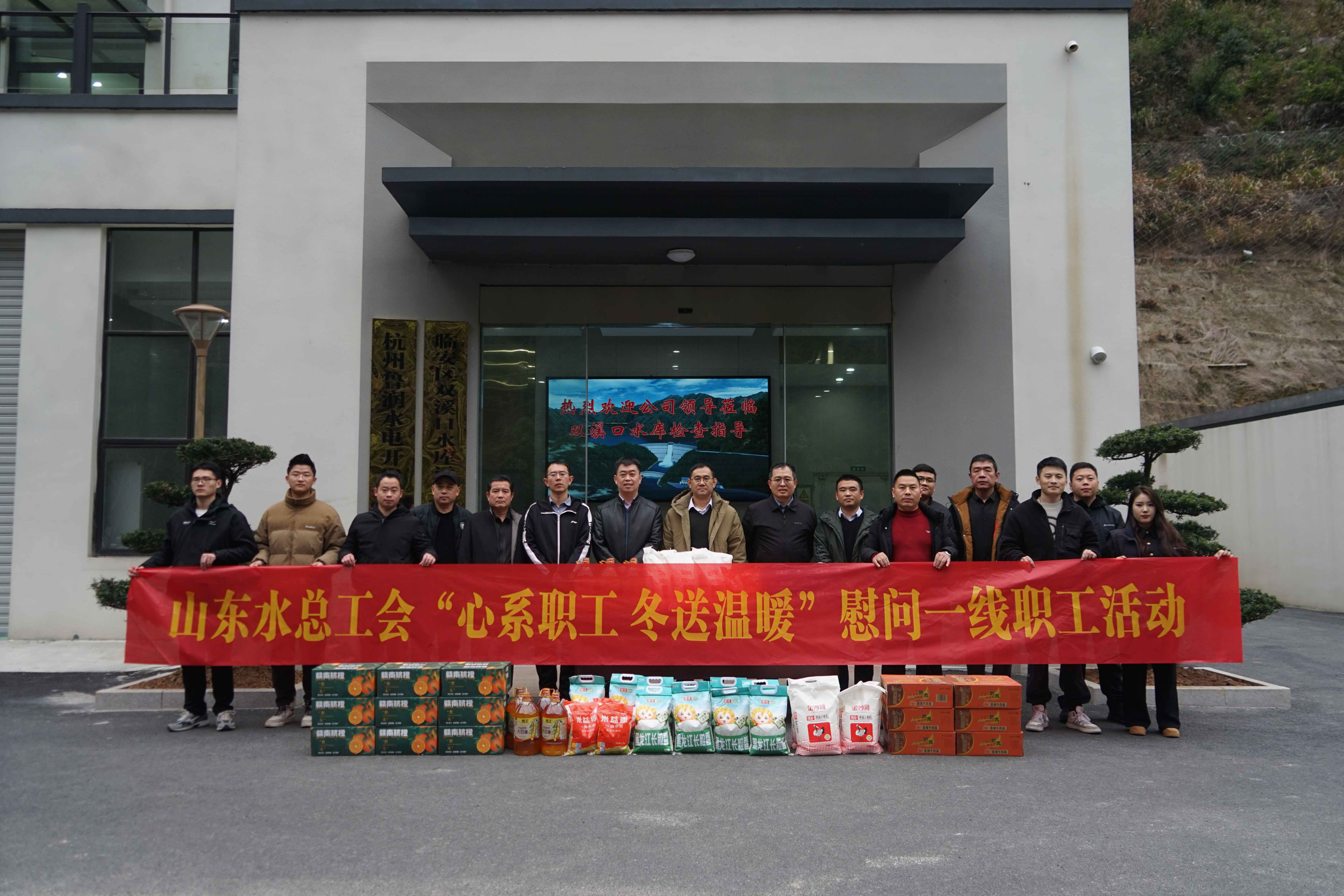 1月14日,J9九游会·(中国)首页登录入口安全总监郭法文一行莅临杭州鲁润J9九游会·(中国)首页登录入口临安区双溪口水库项目开展“心系职工 冬送温暖”慰问活动。